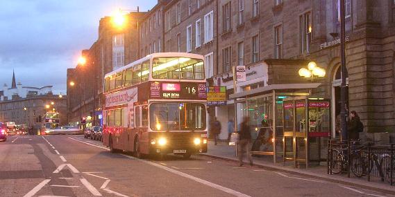 shopping centre, where Lothian 119 (SN04NHK), a Wright/Volvo is