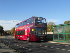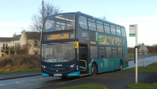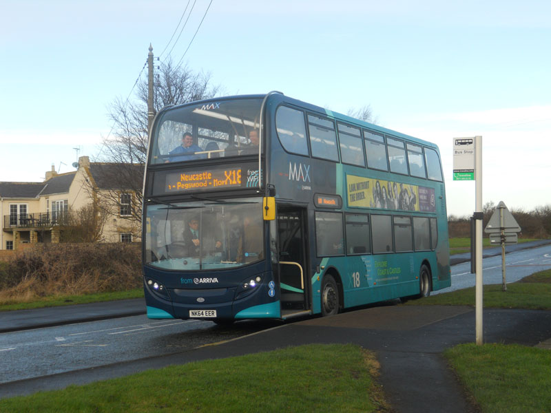 an Enviro400 in Widdrington in January 2015, on the X18 service from