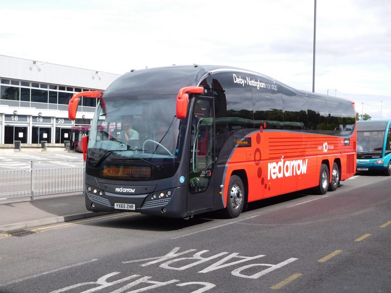 (YX65ZHR) is seen leaving the new bus station in Derby in August