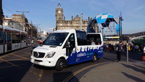 an EVM bodied Mercedes minibus on an Edinburgh tour in August 2016.