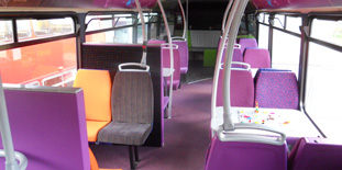 Scania double deckers serving the university into bistro seating.