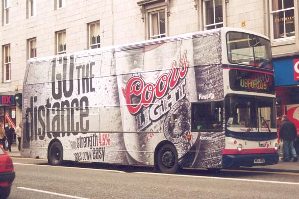 seen sporting a Coors advert in Aberdeen in March 2002. |