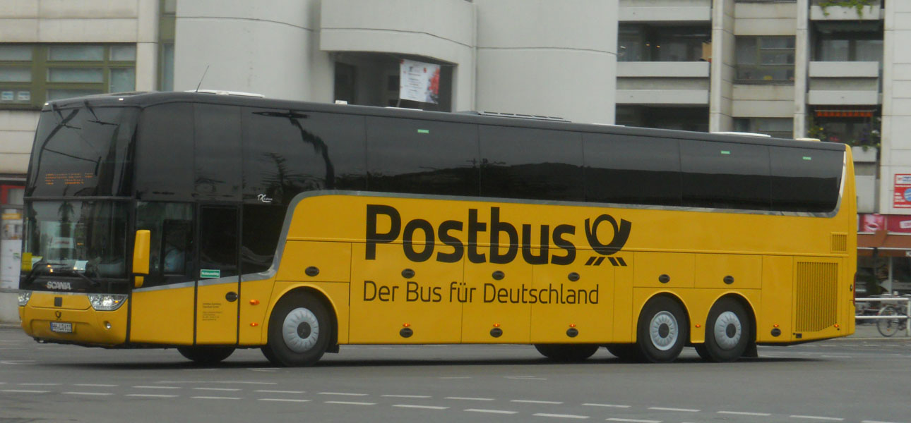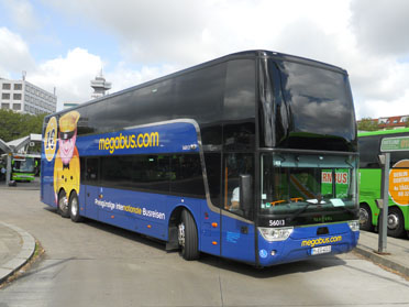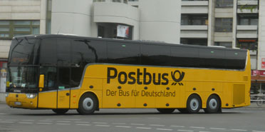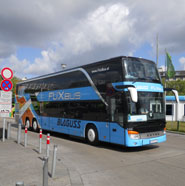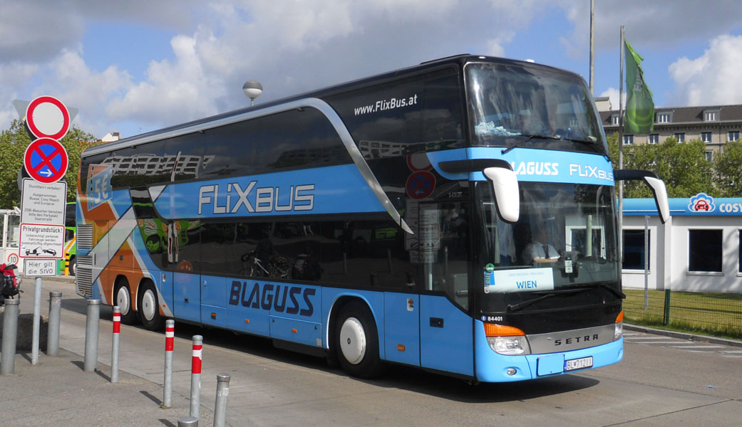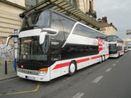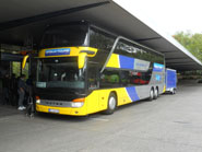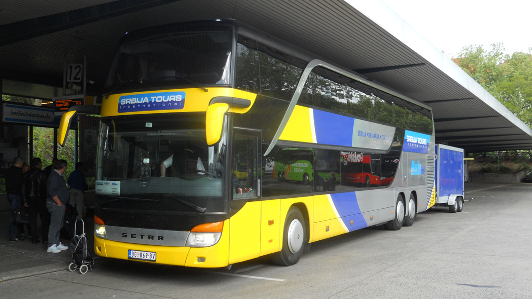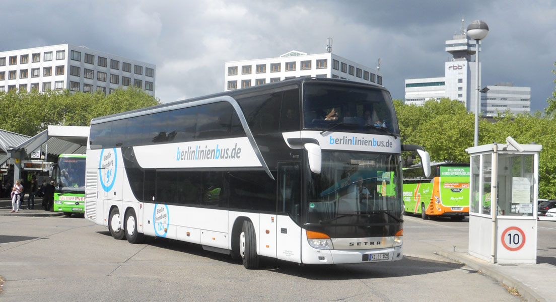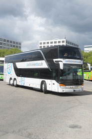 Setra double decker is seen leaving Berlin on the marathon 650km