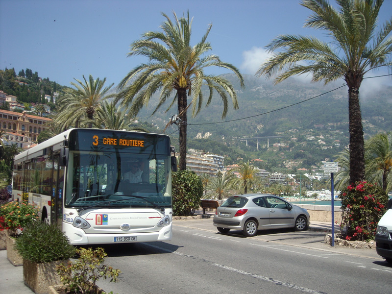 Vehicles and routes Several of the local networks have been renamed and reliveried but the mainstay of all the fleets is still predominantly French (or Italian) vehicles with a smattering of Van Hools in Monaco and Setras on RCA services. There are also the trolleybus survivors on the route from Ventimiglia to San Remo, one of the few remaining systems in Italy. More unusual vehicles to note are the sizeable fleet of gas buses that Nice introduced in the early 2000's and the Mercedes artics that now ply the Nice to Menton route. The major growth area in the last 15 years has been Sophia Antipolis, the business park located near Antibes. A new bus station has been built, new services introduced and the frequency of previous ones vastly increased. It's hard to believe that only 20 years ago there was barely a bus from Antibes to Sophia Antipolis even at peak times. Congestion remains a constant thorn in the side of the operators with many vehicles displaying the dreaded "complet" (full) due to bunching on busy routes. To alleviate some of the issues with timing more direct services to Nice Airport have been introduced. Visit The best time of the year to visit is June or September - it's hot, cheap and there's not many tourists. August is almost unbearable and there can be rain in April/May and October. Envibus and the Lignes D'Azur network offer cheap 1EUR and 2EUR single tickets so there's no excuse not to experience a journey on a bus in the Cote d'Azur. |