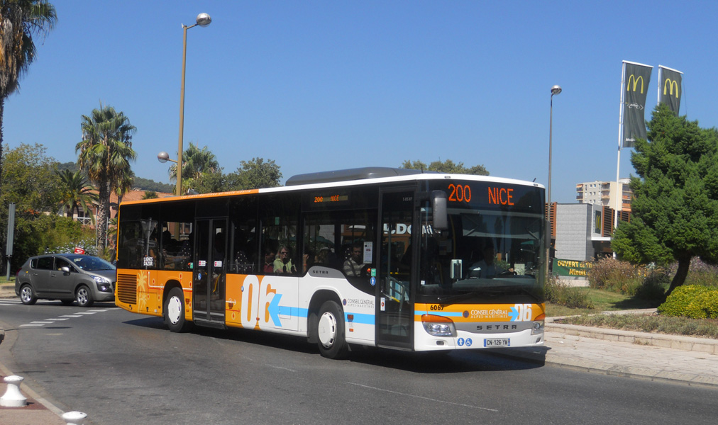 Envibus in Antibes in 2015 | Bus Azur in Cannes in 2010 | RCA in Monaco in 2015 | RCA at Nice Airport in 2015 | Tram in Nice in 2012 | |