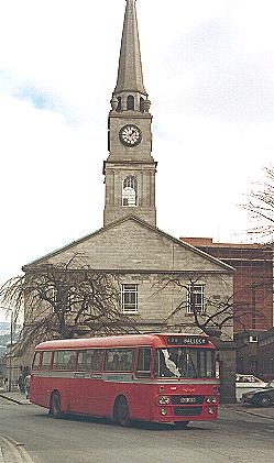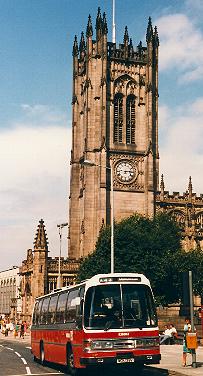 Duple/Leopard 1139 (WCK139V) seen in July 1983, passing Manchester