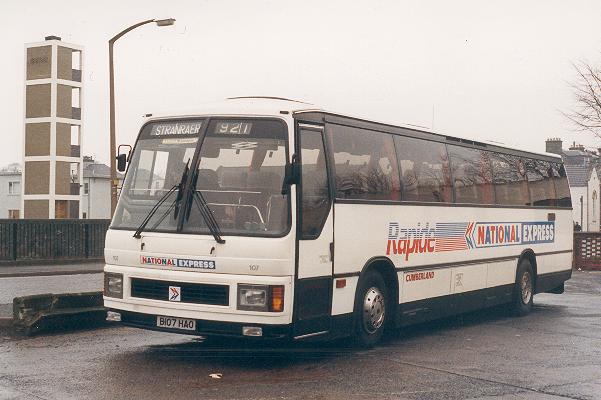 Duple bodied Tiger 107 (B107HAO) at Stranraer depot in December