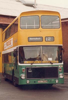 Atlantean LA391 (MUS276F) at Knightswood depot in January 1976. |