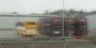 seen through a rainy Stagecoach window at the new First Group