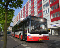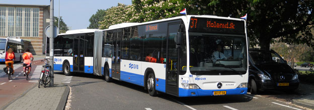 to the north west of Amsterdam where an Omnicity bendybus is