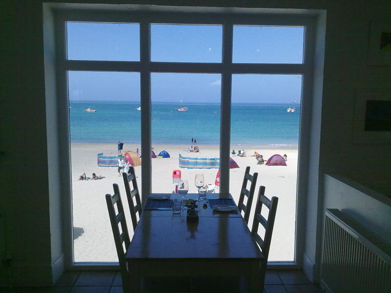 restaurant overlooking St Ives beach eating fresh seafood ? |