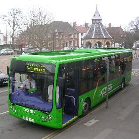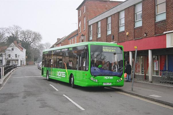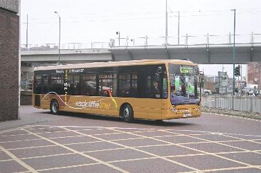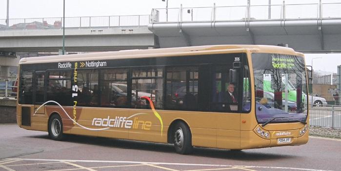 Radcliffe express livery leaving Nottingham's Broad Marsh bus station |