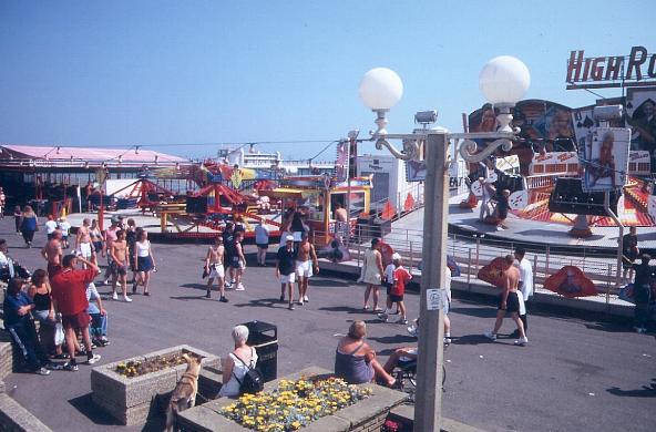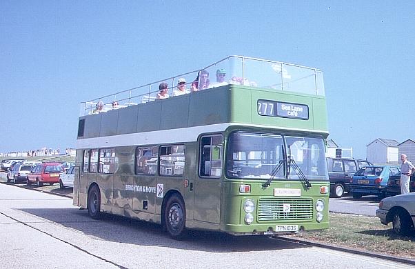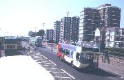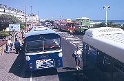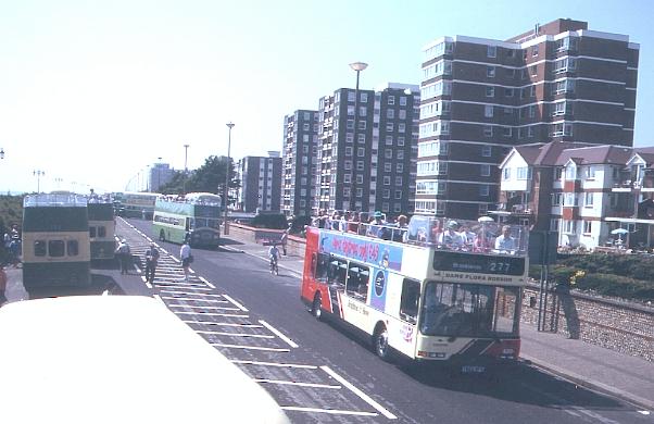 open top East Lancs/Scanias, 820 (T820RBFG) on the promenade. |