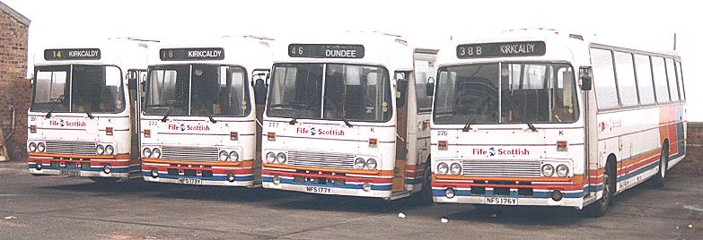 Leopards tucked away at the back of Kirkcaldy depot in April 1999. They are 291