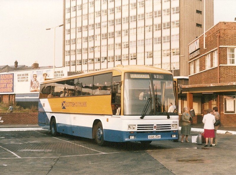 • Kelvin-Central 4305 (D315SGB), a Duple bodied Tiger, on Scottish Citylink duty in Newcastle coach station in October 1990.