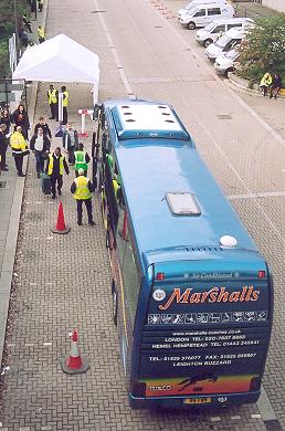 for departure at Milton Keynes rail station, headed up by a Zaks vehicle. |
