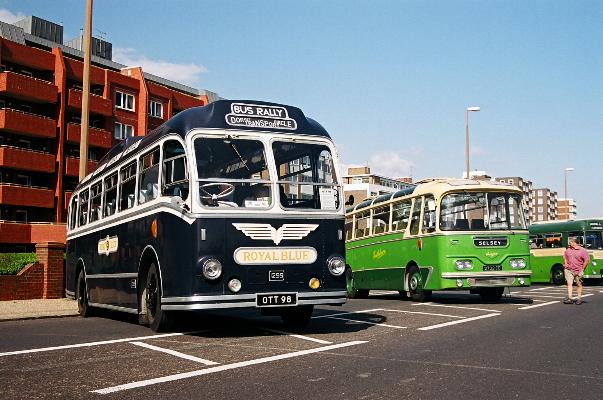 (OTT98), a fine Bristol MW, beside Harrington bodied Leopard L2 2722CD