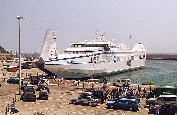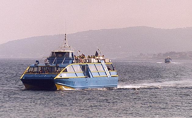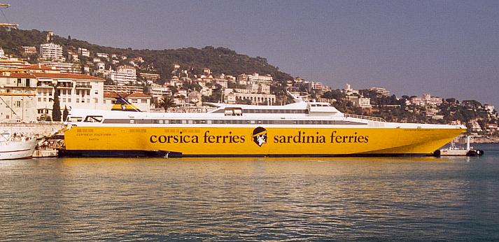 on the Cote d'Azur. Two TMR fast ferries are seen