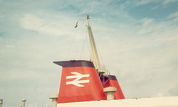 was one of the first British Rail vessels to have twin funnels. It is seen at Stranraer in July 1974.