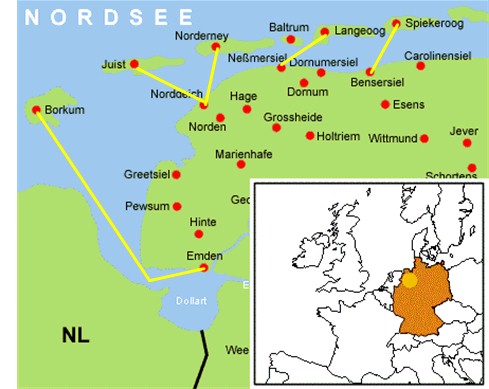 The East Frisian Islands lie just off the coast of Germany in the North