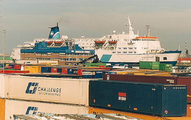 hiding behind a muddled delight of containers at Zeebrugge in August 1995. |