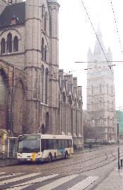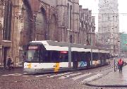 One of Gent's new trams at Korenmarkt in the centre of the city.